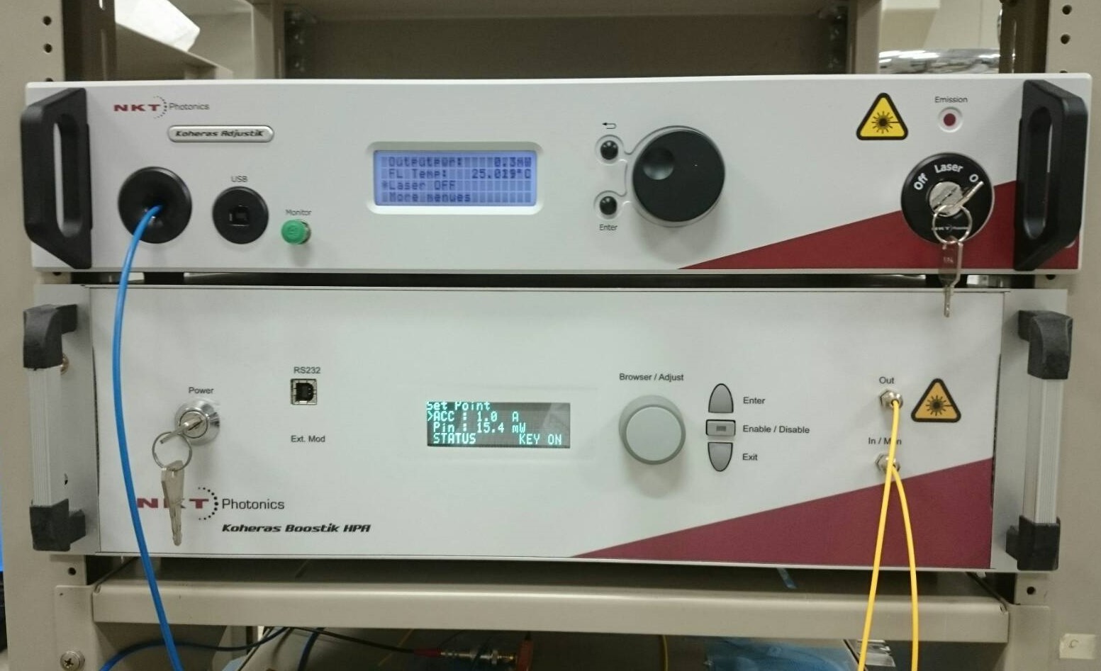 NKT Photonics社のファイバーレーザー Koheras AjustiK E15モデル(1550nm,最 大50mW)