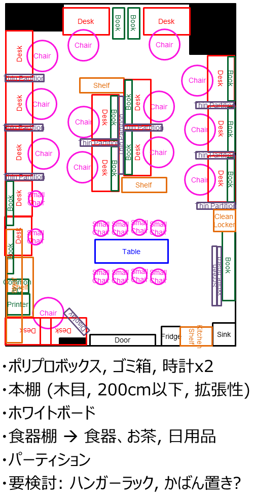 | 身の回りの整理 | 各自 | 各自自分のものはまとめておく。使用頻度が低く、大きなものは3階へ。 | |